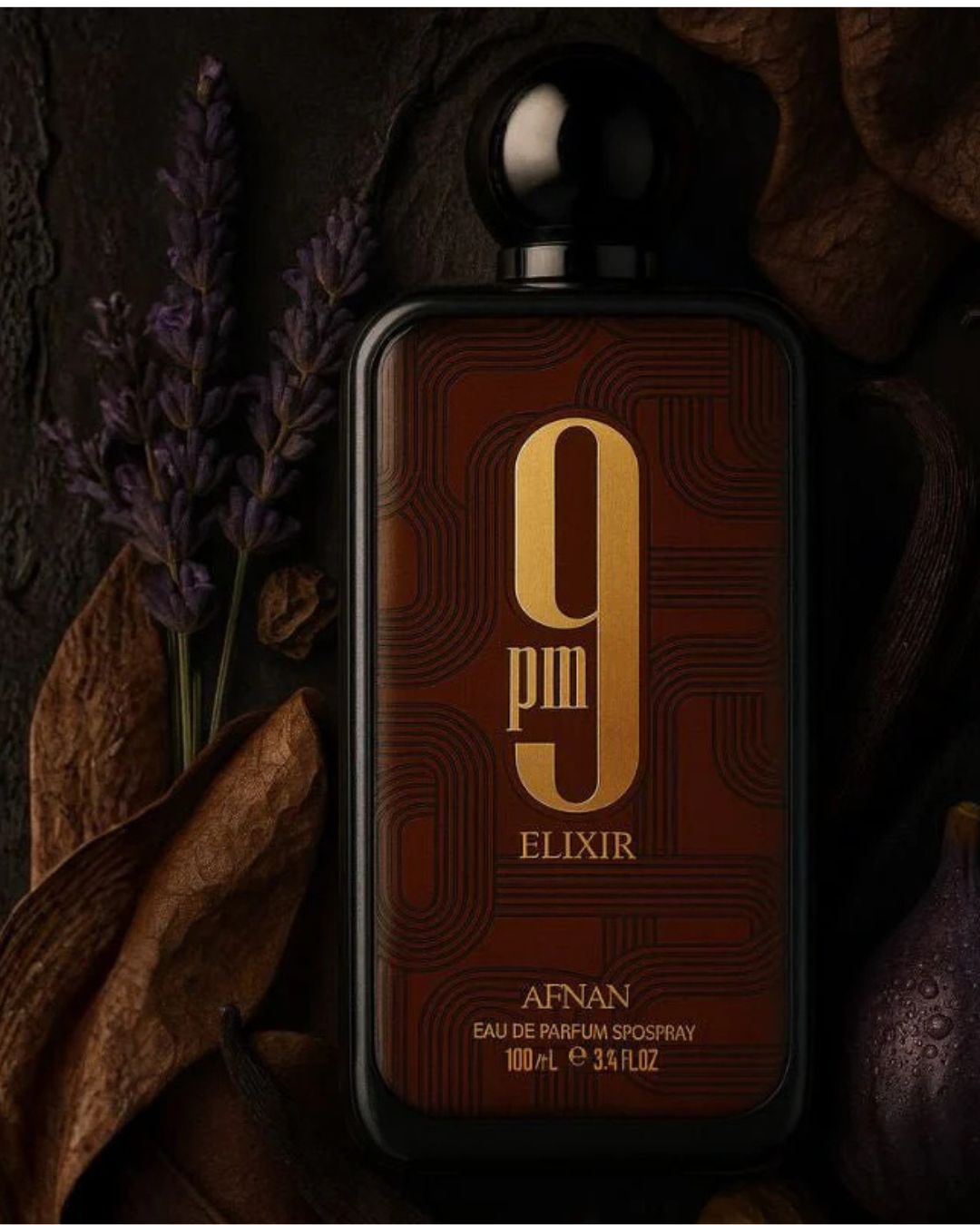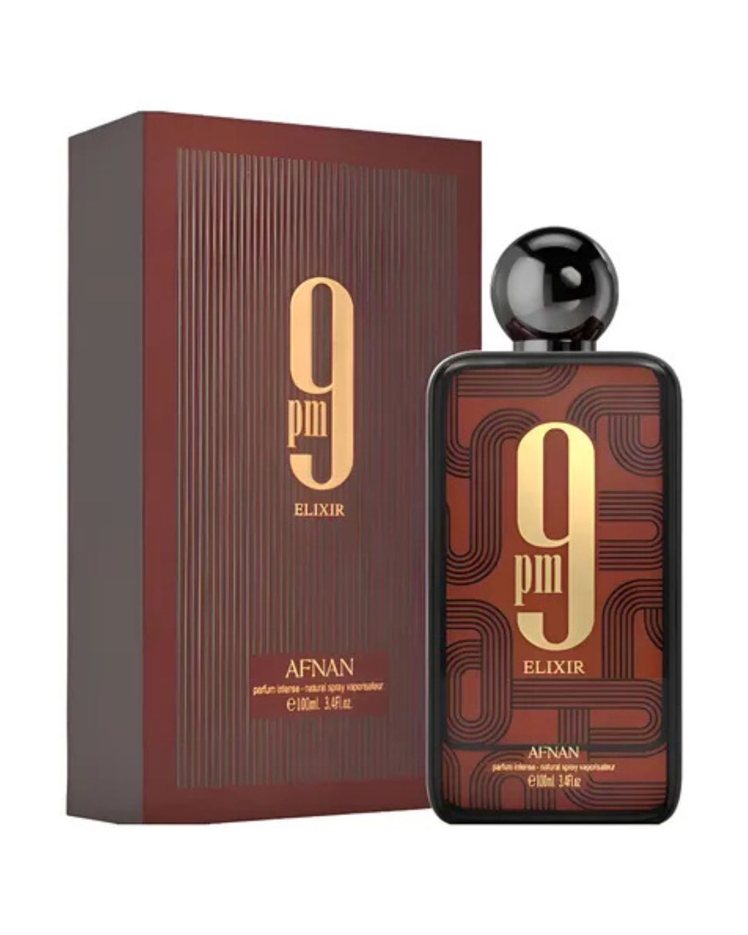 9PM Elixir de Afnan é a essência da noite elevada ao máximo: especiado, intenso, elegante e viciante.