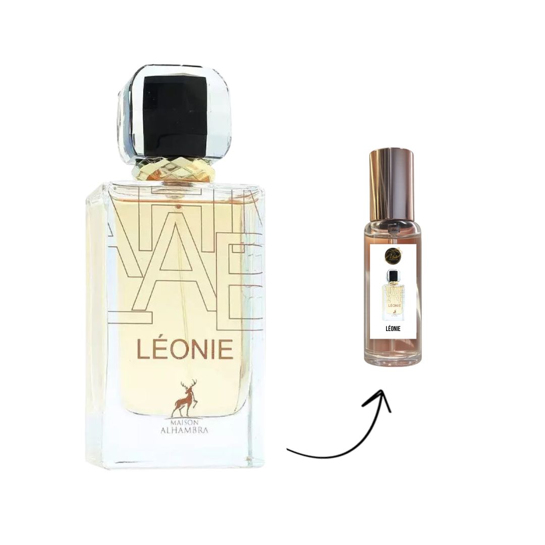 Léonie de Maison Alhambra é um perfume Floral. As notas de topo são: Lavanda, Mandarina, Petitgrain e Groselha Preta. As notas de coração são: Lavanda, Flor de Laranjeira e Jasmim. As notas de fundo são: Almíscar, Baunilha, Cedro e Âmbar Cinzento.