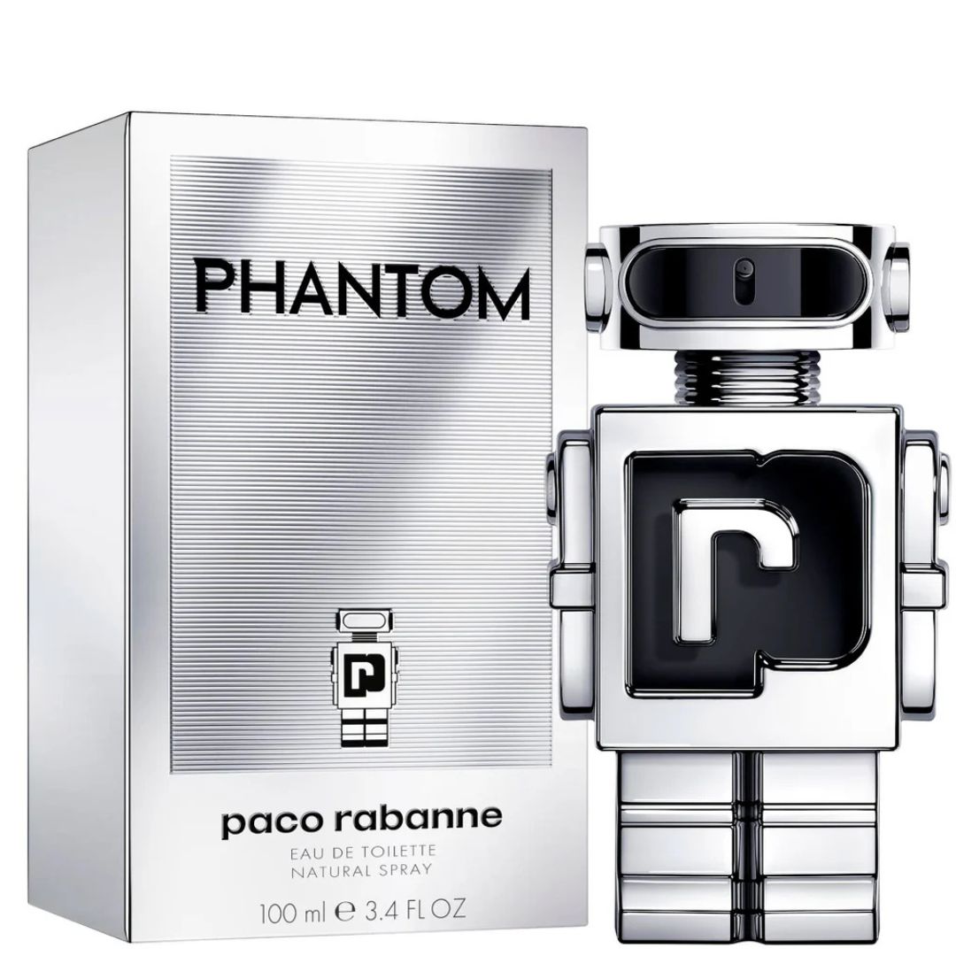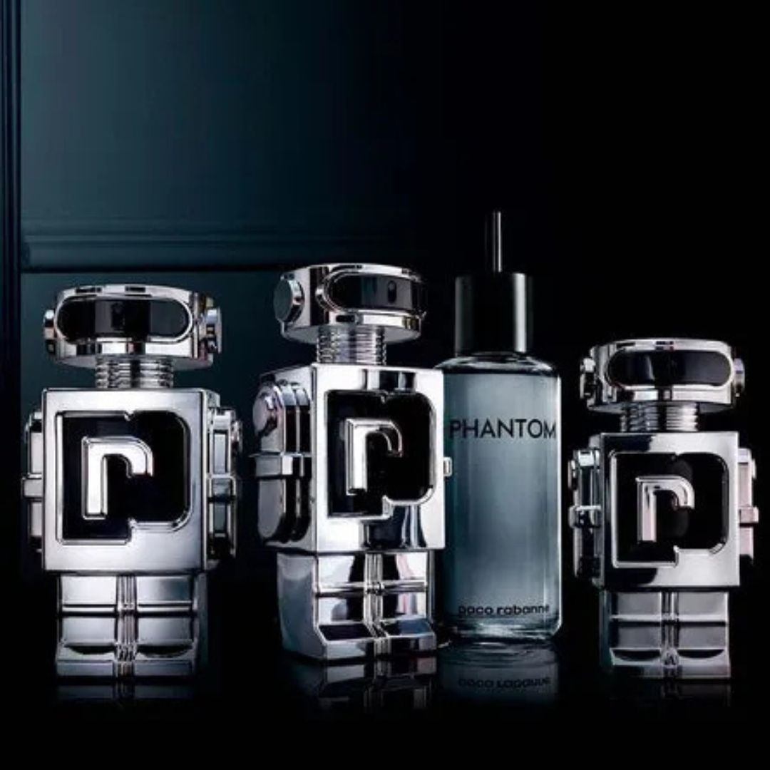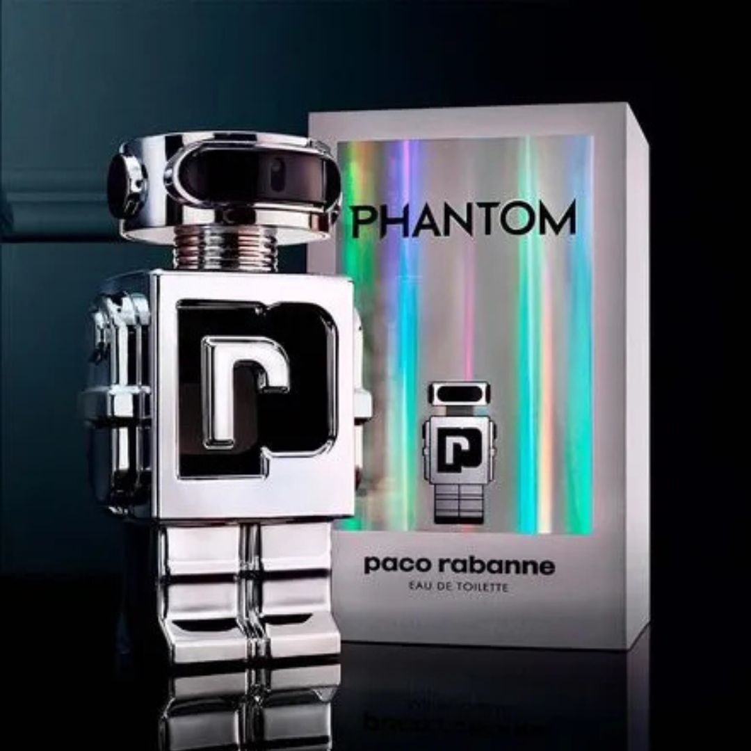 O frasco de 100ml tem formato de robô metálico cromado com detalhes em preto, representando a fusão entre inovação e estilo. Além do visual marcante, o frasco conta com tecnologia NFC integrada: ao aproximar seu smartphone, você é conectado ao “Universo Phantom”, acessando conteúdos digitais exclusivos.